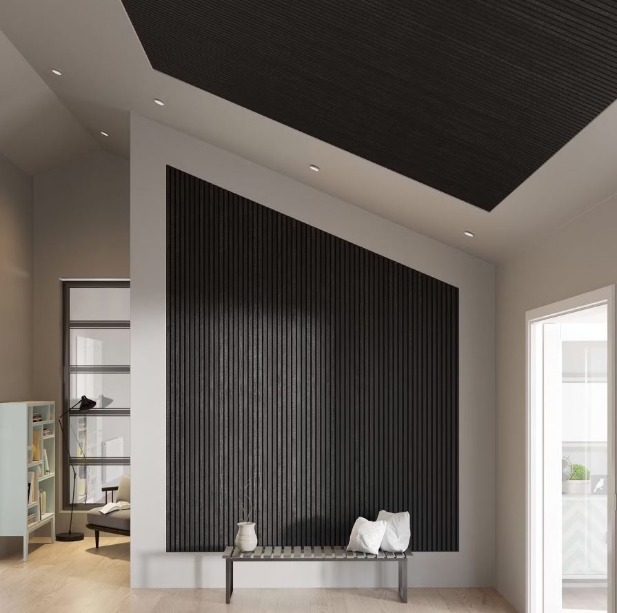 Panoul acustic – riflaj din lemn – poate fi folosit pentru a crea un perete elegant din lamele sau tavan din lamele în casa ta.