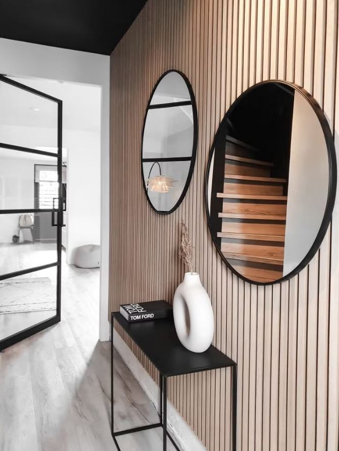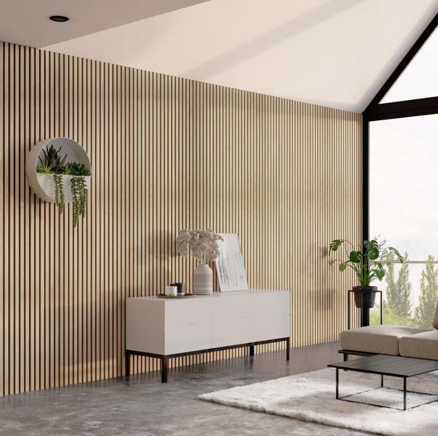 Panoul acustic – riflaj din lemn – poate fi folosit pentru a crea un perete elegant din lamele sau tavan din lamele în casa ta.