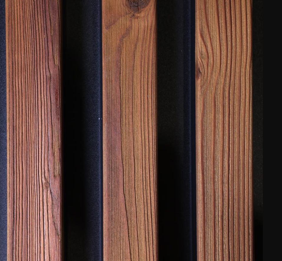 Panourile Aluwood sunt realizate din lemn de molid tratat termic, ceea ce le conferă culoarea maro. Panourile negre și gri sunt, de asemenea, tratate termic și apoi vopsite pentru a obține culorile respective. Aluminiul este acoperit cu pulbere în negru.
