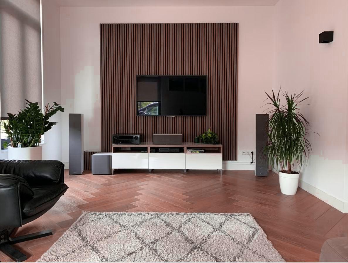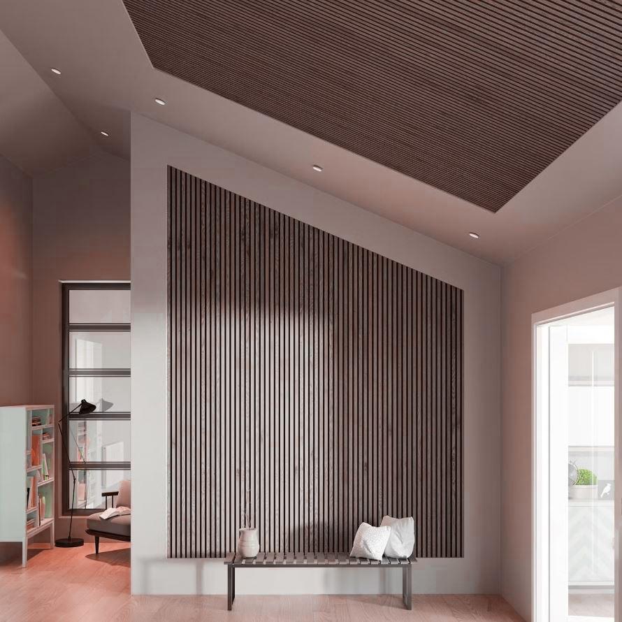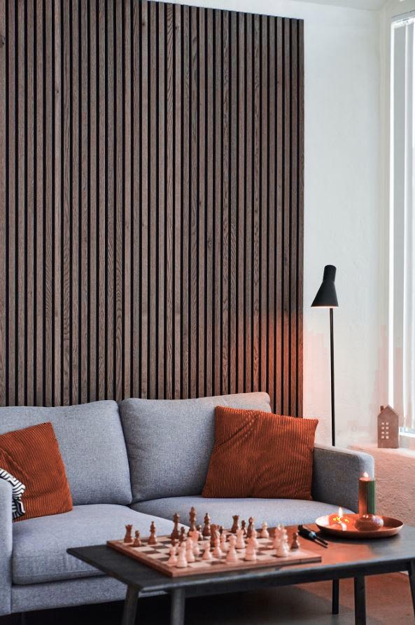 Panoul acustic – riflaj din lemn – poate fi folosit pentru a crea un perete elegant din lamele sau tavan din lamele în casa ta.