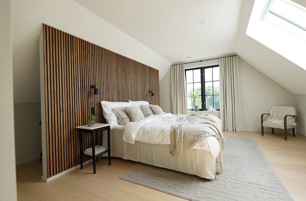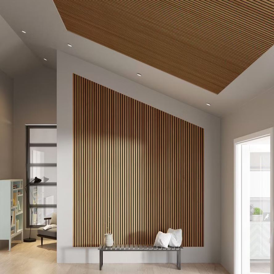 Panoul acustic – riflaj din lemn – poate fi folosit pentru a crea un perete elegant din lamele sau tavan din lamele în casa ta.