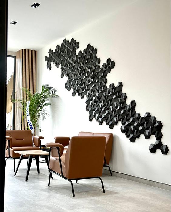 Decor de la 3D Zeta Design Concept Bazat pe un design tridimensional hexagonal , „ ZETA ” este o versiune elegantă a unui model cu o îngrijire și un stil unic , care este disponibil într- un finisaj glazurat , cu un finisaj premium și culori diferite . Efectul este de a crea o armonie a nuanței și apoi de a crea imagini și grafice subtile. Plasează ZETA Decor printuri 3D pe o pânză tridimensională cu forme liniare realiste. Aceasta are grijă de designul interior romantic și modern, inspirat de geometria poligonală a lui ZETA. Efectul vizual al liniilor discrete ale lentilei face posibilă evidențierea luminii naturale și reflectarea ei frumos în decorațiuni 3D.